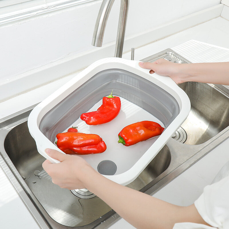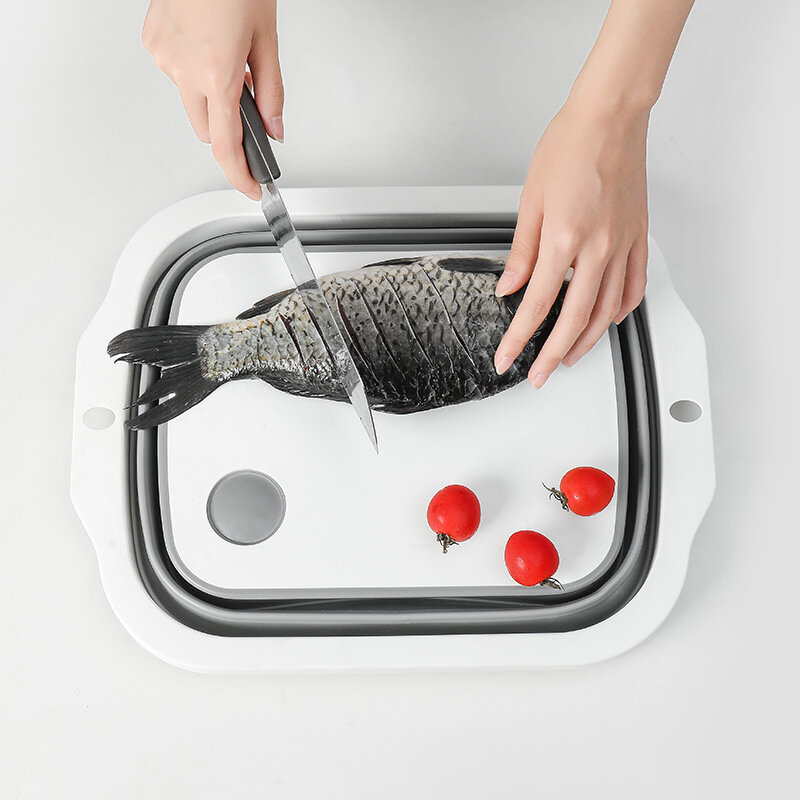 Leeresztő kosárként használható, és ezzel gyümölcsök és friss zöldségek mosására és leeresztésére szolgál. Ha vágódeszkává van hajtva, zöldségeket vághat, gyümölcsöket vághat és finom ételeket készíthet.